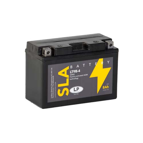 - Akumulator motora LT9B-4 SLA, 12 volti, 8 Ah, starter je akumulator s AGM tehnologijom. LT9B-4 SLA je već tvornički aktiviran (napunjen i napunjen) i stoga spreman za korištenje prilikom isporuke. Ova olovna baterija je otporna na curenje i ne zahtijeva održavanje. Može se ugraditi u nagnuti položaj do 90°. LT9B-4 SLA je pravi allrounder i pogodan za sezonsku upotrebu i kratke udaljenosti.