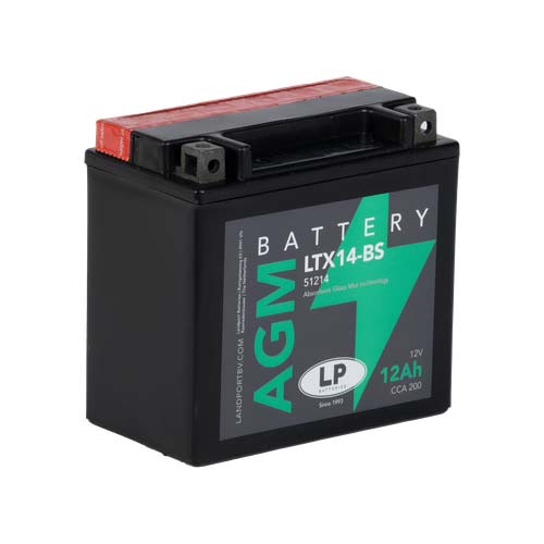 - Akumulator motora LTX14-BS, 12 volti, 12 Ah, je starter akumulator s AGM tehnologijom. LTX14-BS je suhi prethodno napunjen i dolazi s odgovarajućim paketom kiselina. Ova olovna baterija je, nakon punjenja i punjenja, 100% bez održavanja i nepropusna. Može se ugraditi u nagnuti položaj do 45°. LTX14-BS je pravi allrounder i pogodan za sezonsku upotrebu i kratke udaljenosti.